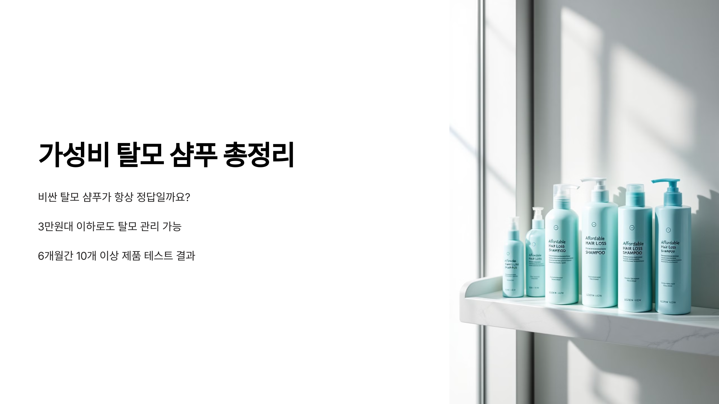 안녕하세요, 여러분! 오늘은 제 개인적인 두피 고민에서 시작된 이야기를 들려드리려고 해요. 작년 여름, 샤워할 때마다 머리카락이 한 움큼씩 빠지는 걸 보고 정말 놀랐어요. 처음엔 비싼 탈모 샴푸만 찾아다녔는데... 6개월 동안 10개가 넘는 제품을 테스트해본 결과, 가격대비 효과가 좋은 제품들을 발견했답니다. 그래서 오늘은 제 지갑도 살리고 두피도 살린 '가성비 끝판왕' 탈모 샴푸들을 총정리해드릴게요. 진짜 효과 있고 가격도 착한 제품들만 골랐으니 끝까지 함께해주세요!