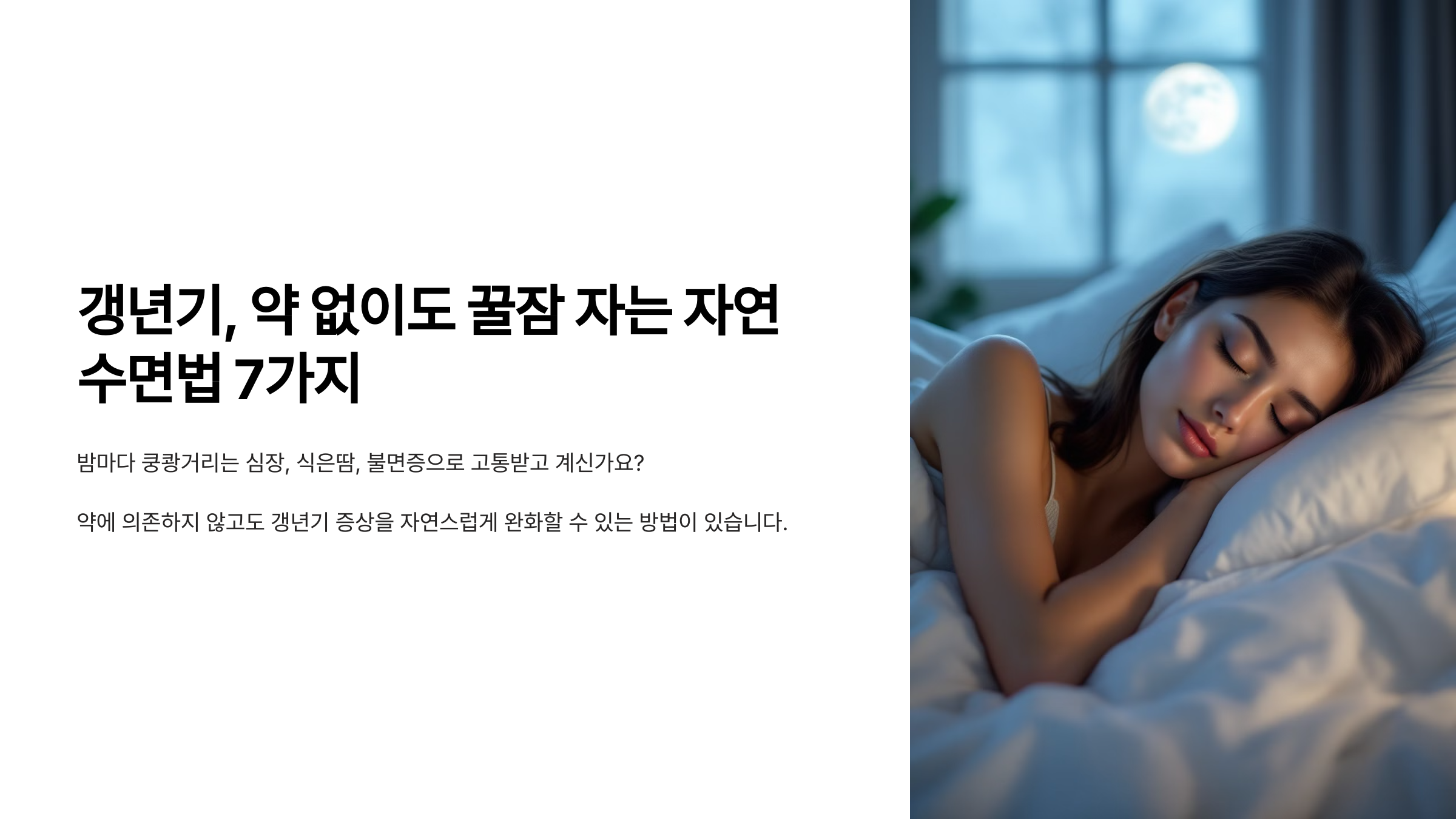 밤마다 쿵쾅거리는 심장, 식은땀, 불면증으로 고통받고 계신가요? 약에 의존하지 않고도 갱년기 증상을 자연스럽게 완화할 수 있는 방법이 있습니다.