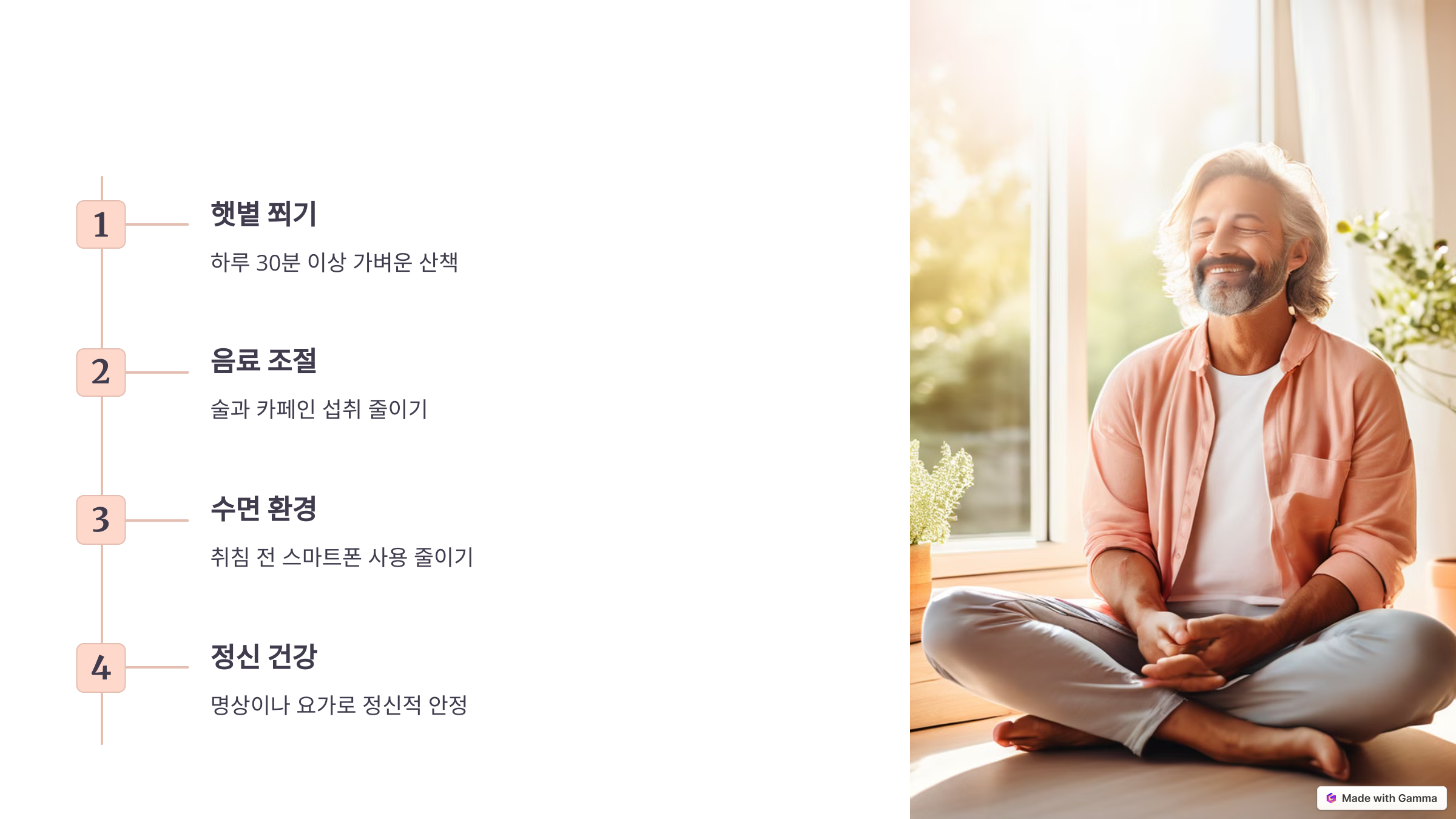- 하루 30분 이상 햇볕을 쬐며 가벼운 산책하기