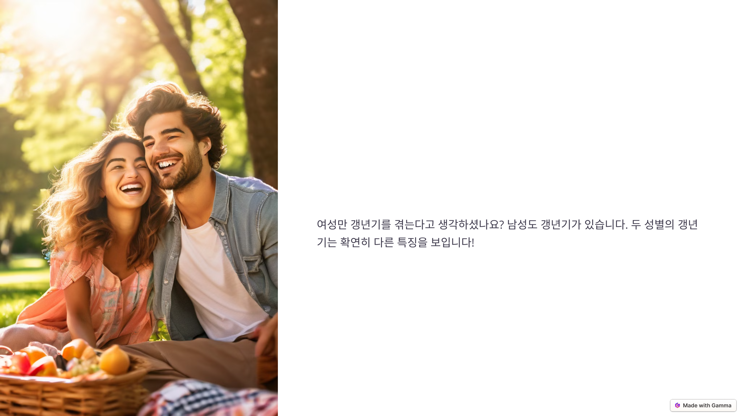 여성만 갱년기를 겪는다고 생각하셨나요? 남성도 갱년기가 있다는 사실, 알고 계셨나요? 하지만 두 성별의 갱년기는 확연히 다른 특징을 보입니다!