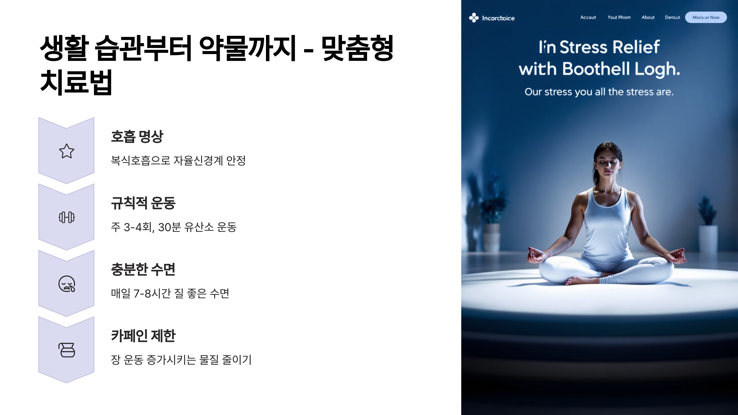 - 심리 상담: 만성적인 스트레스나 불안이 있다면, 인지행동치료(CBT)와 같은 전문적인 심리 상담이 도움이 될 수 있어요.