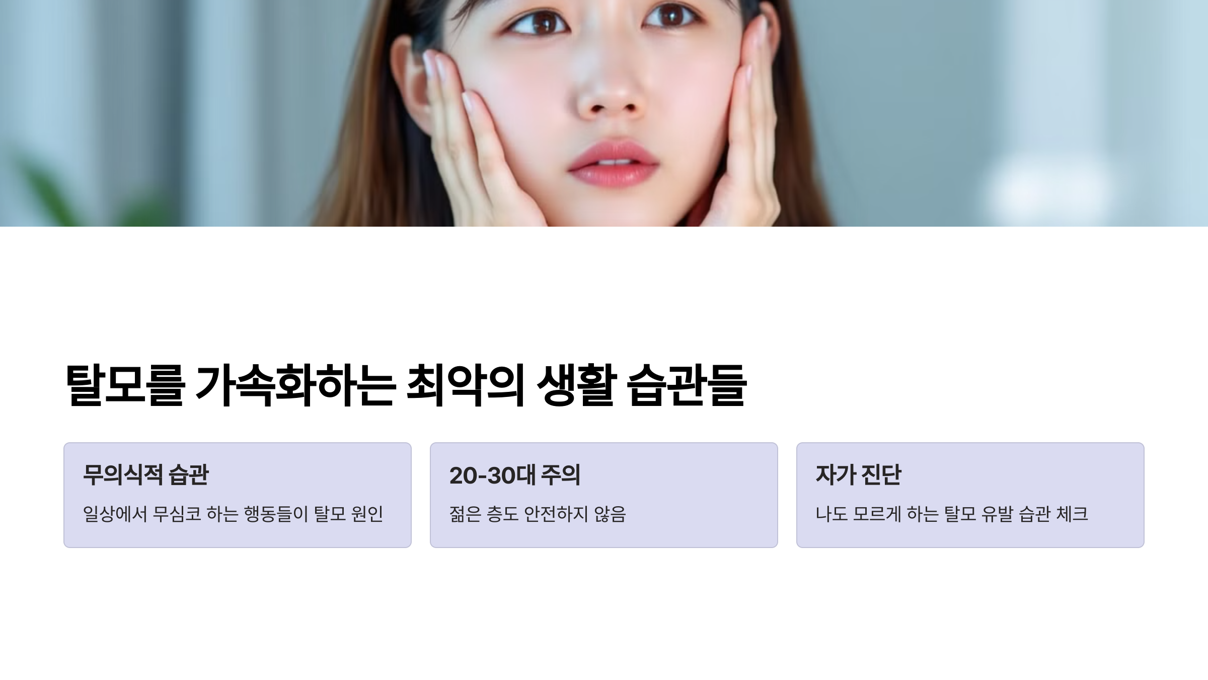 이런 초기 신호들을 발견했다면, 생활 습관부터 점검해보는 게 좋아요. 그럼 다음으로 어떤 습관들이 탈모를 더 악화시키는지 알아볼까요?