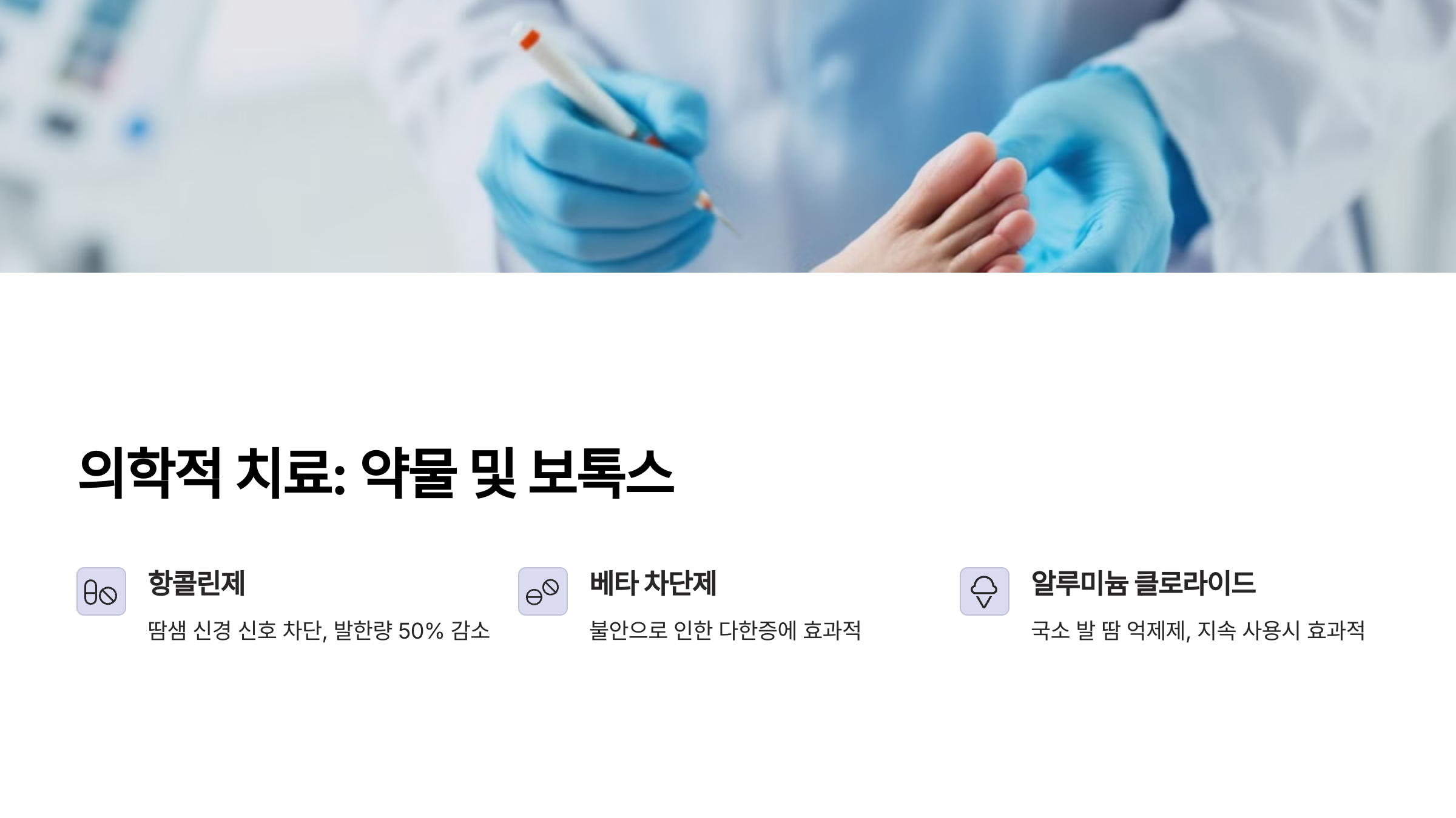 의사 선생님이 처음으로 제안해주신 것은 약물 치료였어요. 발 다한증 치료에 사용되는 약물에는 여러 종류가 있는데, 제가 직접 경험해본 약물과 효과를 정리해봤어요.