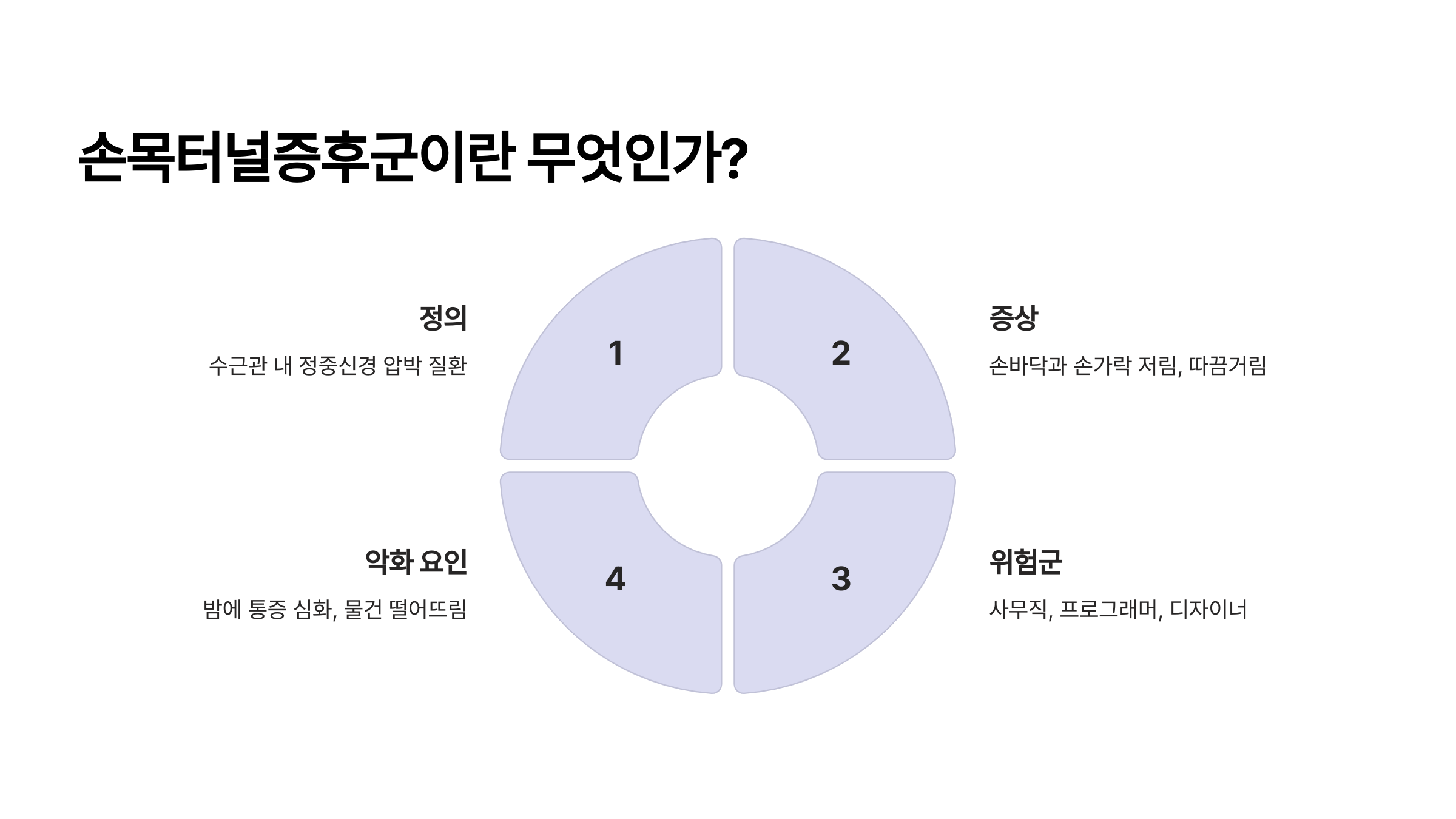 관련 태그: 손목터널증후군, 손목통증, 정중신경, 사무직질환, 컴퓨터작업증후군, 인체공학적자세, 손목스트레칭, 직업병예방, 디지털디톡스, 건강관리