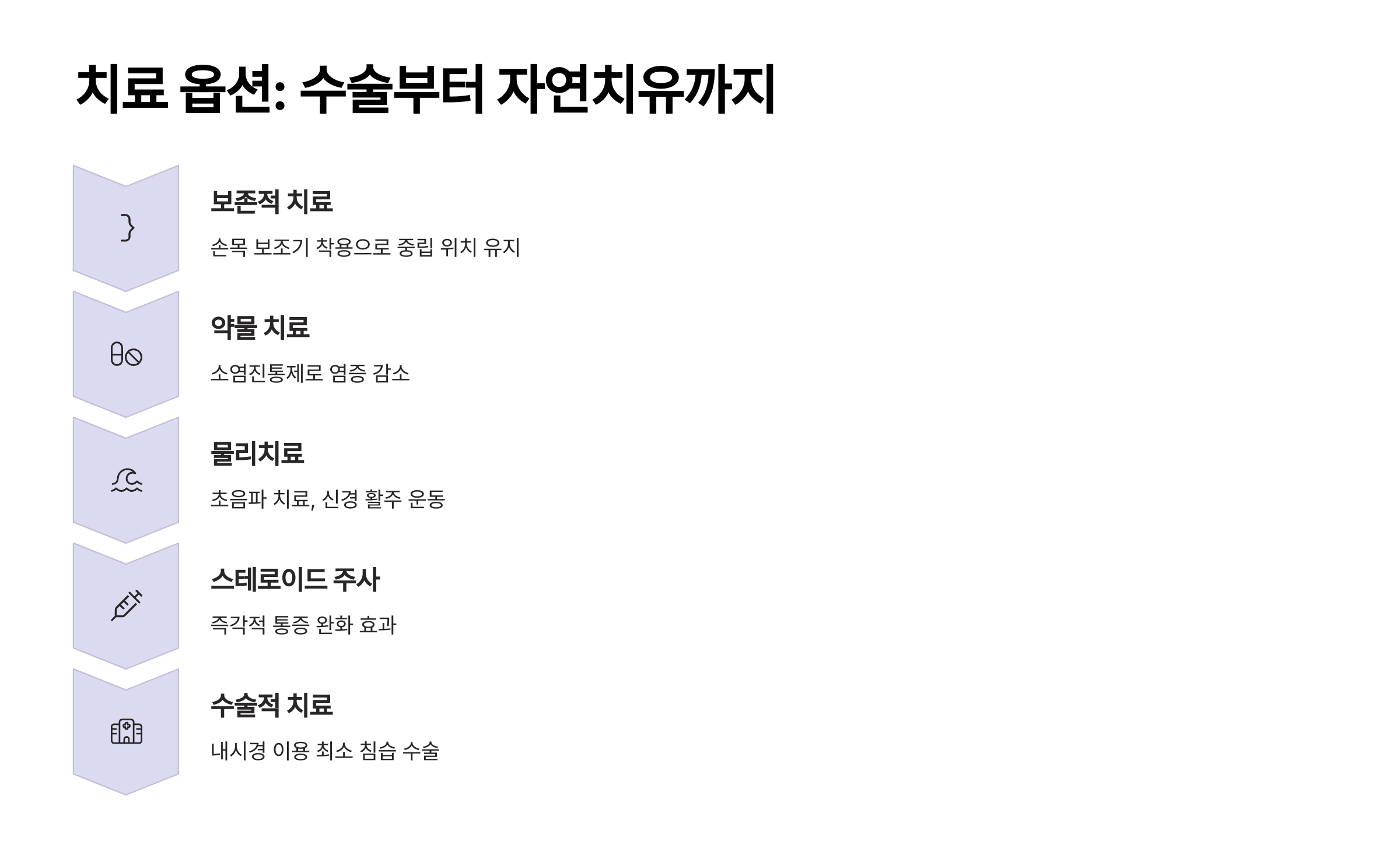 손목터널증후군으로 진단받으셨다고요? 걱정하지 마세요. 다행히도 치료 방법은 정말 다양합니다. 증상의 경중에 따라 보존적 치료부터 수술적 치료까지 선택할 수 있어요.