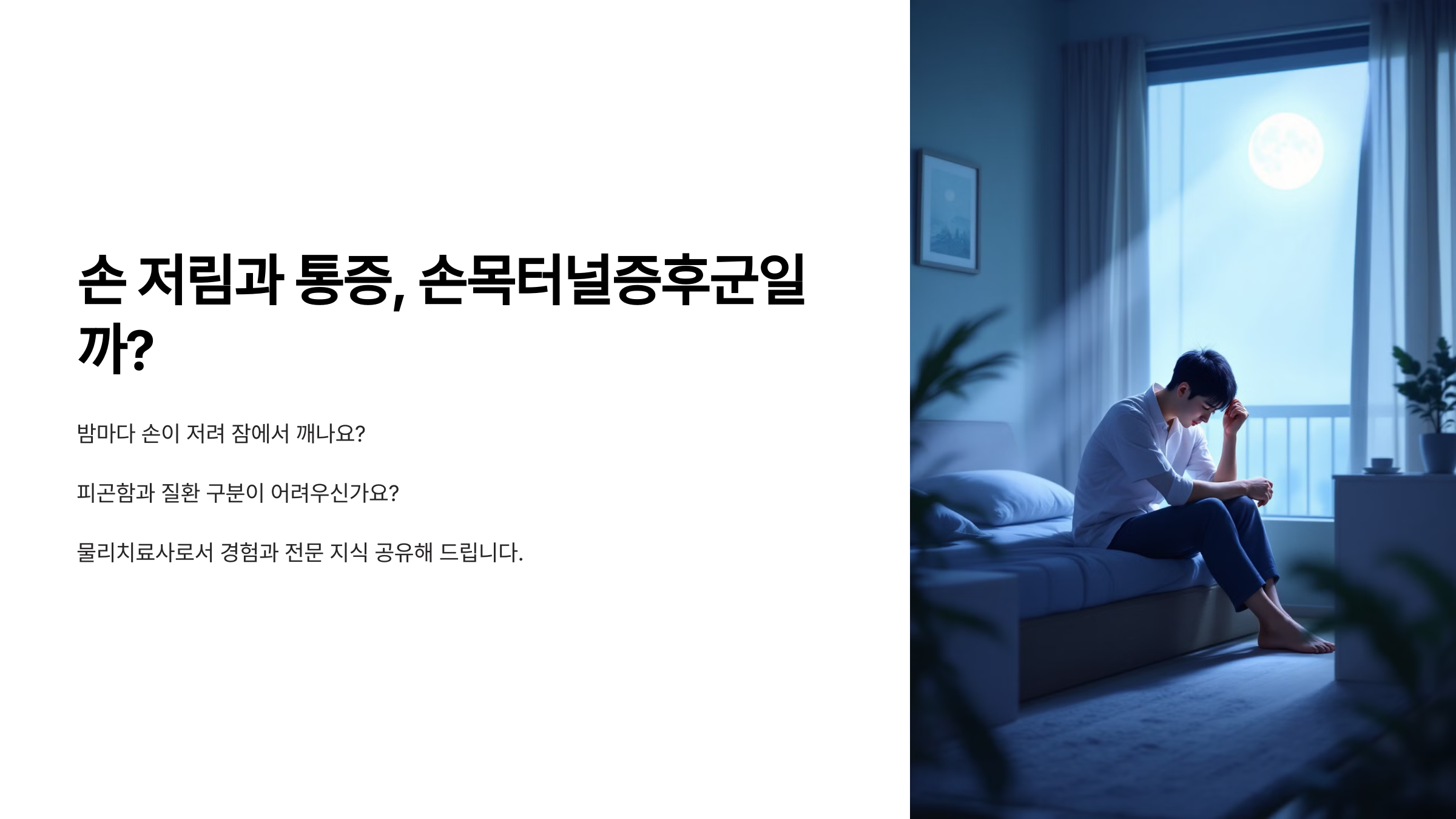 밤마다 손이 저리고 아파서 잠에서 깨시나요? 그냥 피곤한 건지 심각한 질환인지 구분이 안 되시죠?