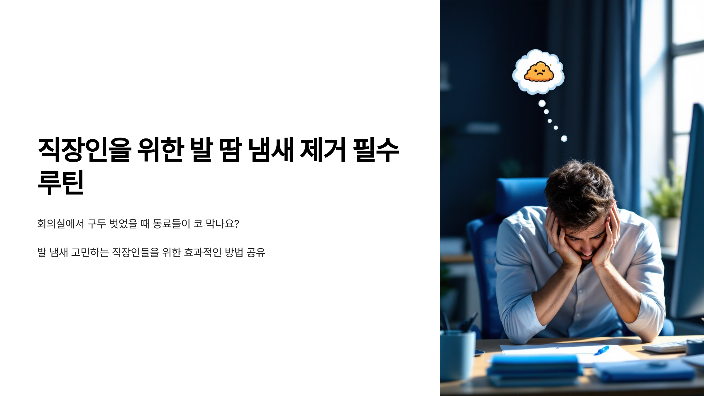 회의실에서 구두를 벗었을 때 몰래 코를 막는 동료들을 본 적 있나요? 혹시 그 주인공이 나는 아닐지 불안하신가요?