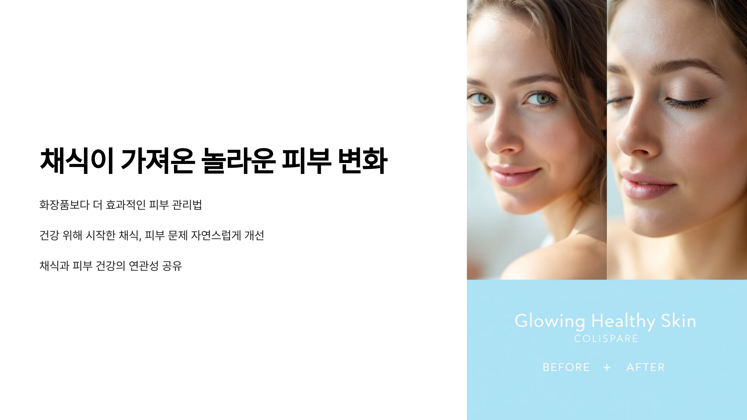 안녕하세요, 여러분! 오늘은 제가 약 1년 동안 채식을 하면서 경험한 놀라운 피부 변화에 대해 솔직하게 이야기해볼까 해요. 사실 처음에는 그냥 건강해지고 싶어서 시작했던 채식인데, 어느 순간부터 피부가 달라지는 걸 느꼈어요. 그동안 써본 화장품이나 피부과 치료로도 해결되지 않았던 문제들이 자연스럽게 개선되는 경험을 했거든요. 이 글을 통해 제 경험과 함께 채식과 피부 건강의 연관성에 대한 실제 사례와 과학적 근거도 함께 알아보려고 합니다.
