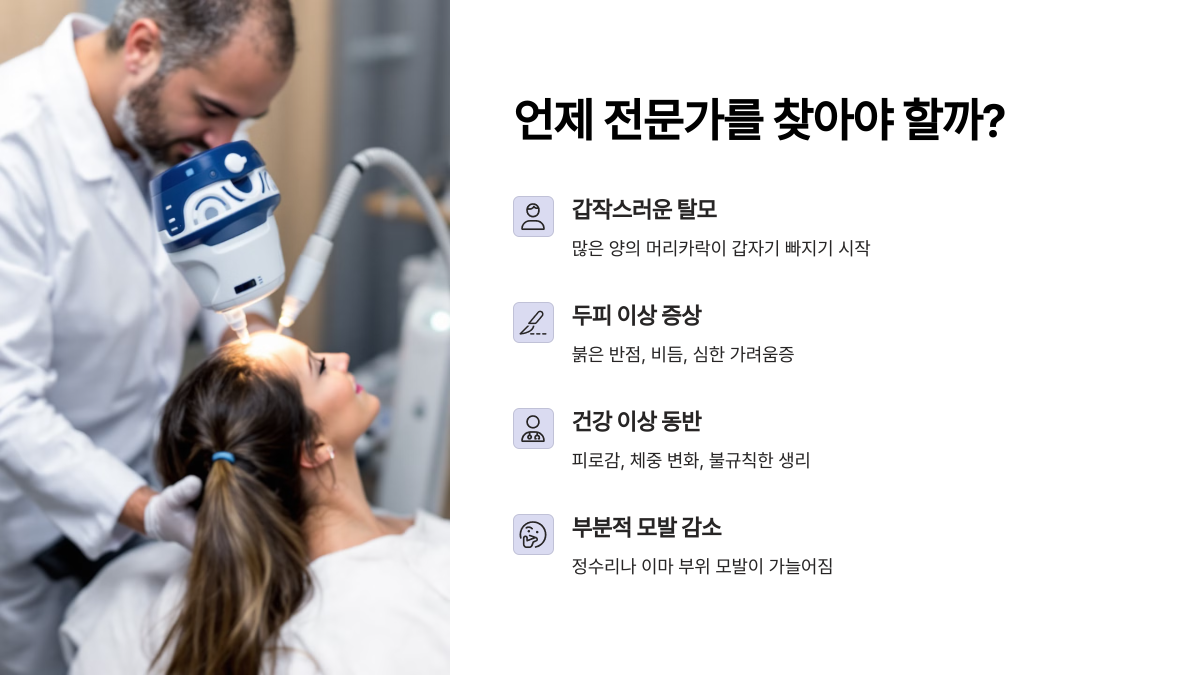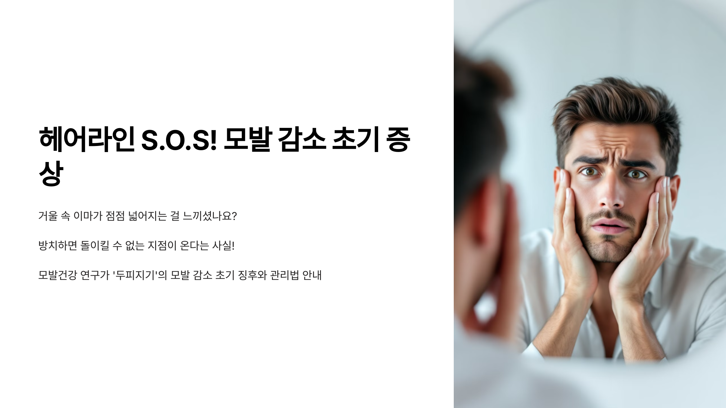 거울 속 이마가 점점 넓어지는 걸 느끼셨나요? 방치하면 돌이킬 수 없는 지점이 온다는 사실, 알고 계셨나요?